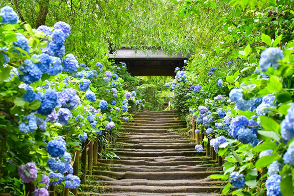 境内の数千株のアジサイが有名なお寺です。北条時宗が建立した禅興寺の塔頭(禅興寺は明治初年に廃絶)で、アジサイの他にも紅葉などの美しい庭園が見所です。シーズンにはかなり込み合うので要注意。